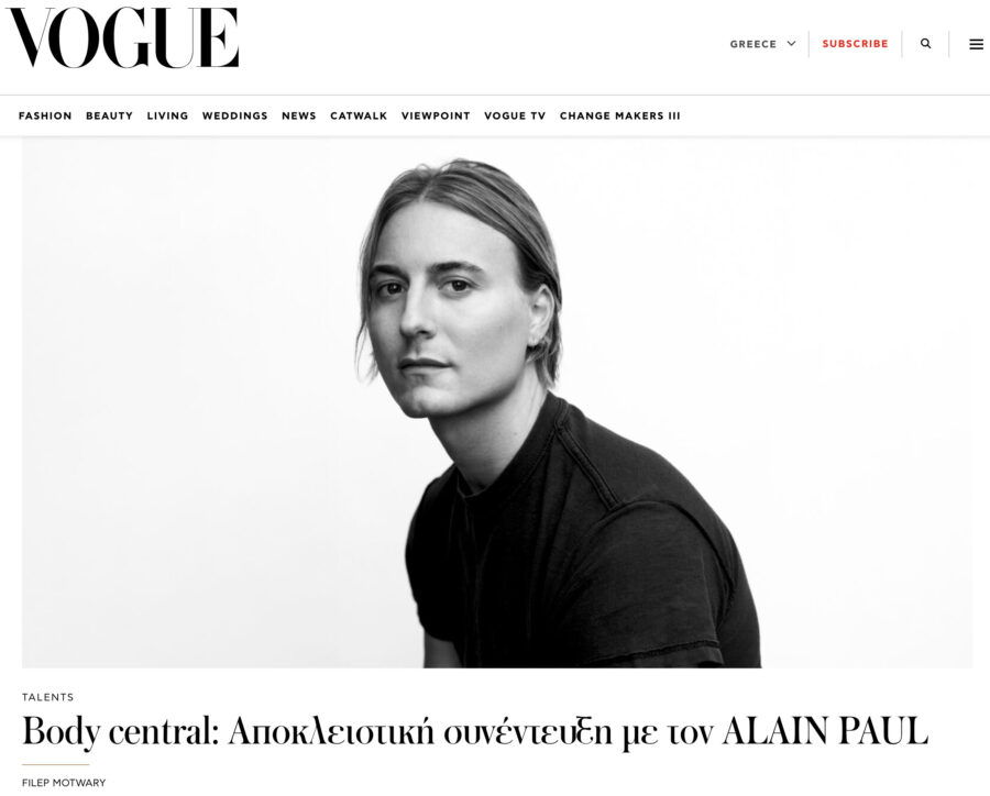 For Vogue Greece’s October issue, the magazine’s Editor-at-Large Filep Motwary sat down with ALAIN PAUL