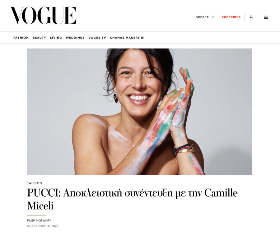 For Vogue Greece’s December issue, the magazine’s Editor-at-Large Filep Motwary sat down with PUCCI’s Camille Miceli